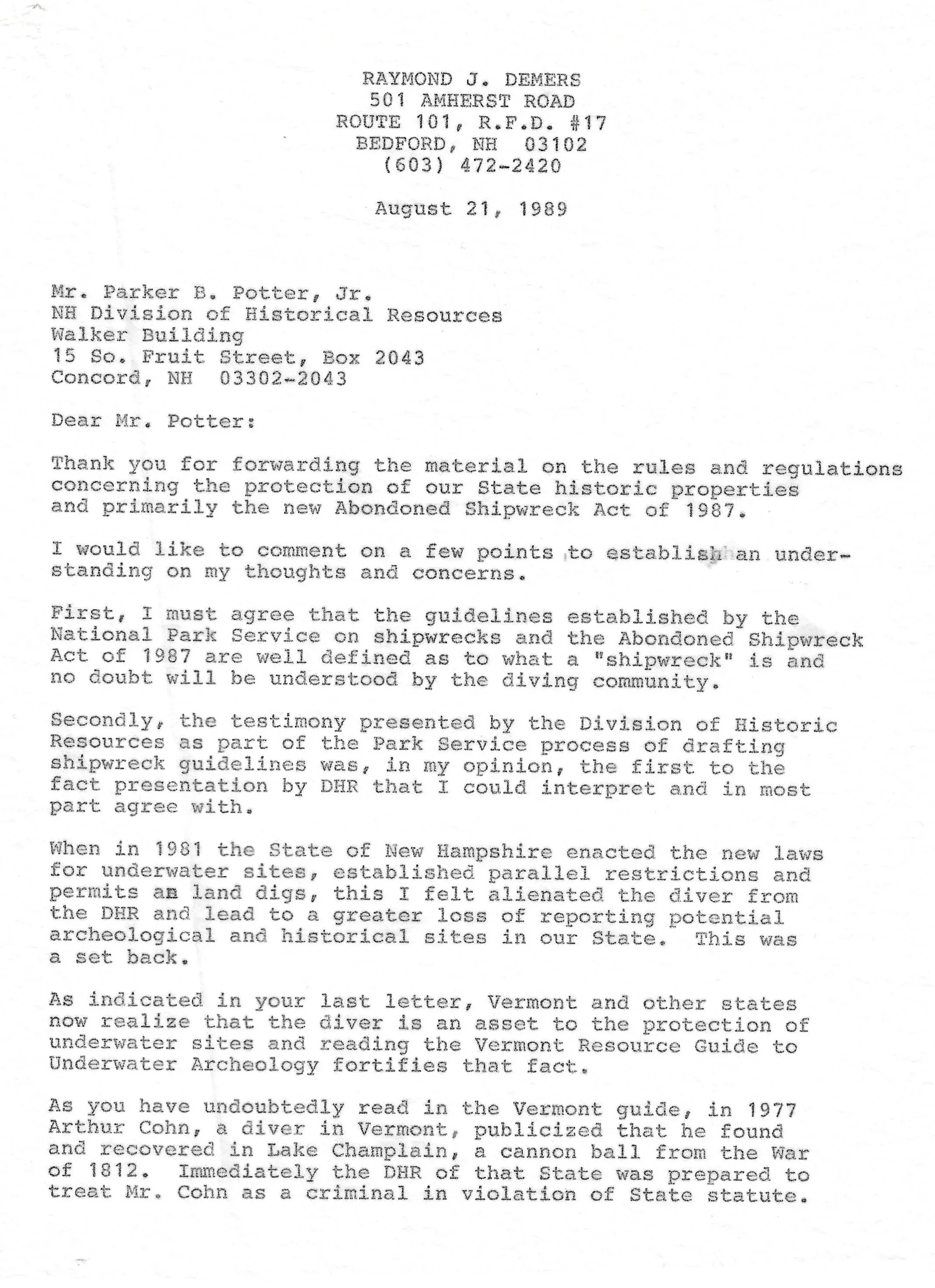 Letters Letter from Department of archeology Letter to nh division of Historical Resources pg 1 Letter to NH division od Historical resources pg 2 Letter to NH division of histrorical resources