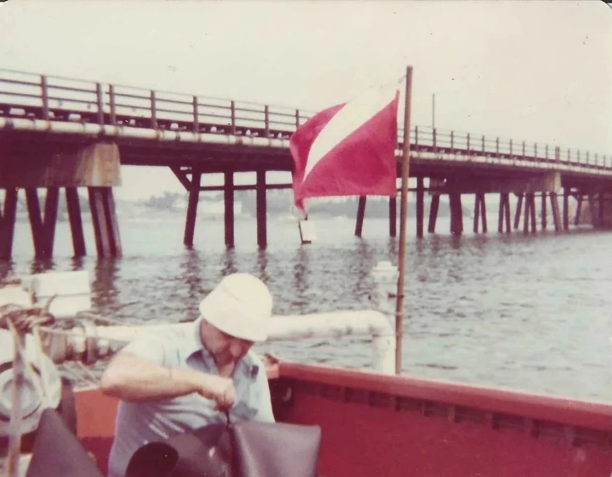 I taught John how to dive when he was very young. Together we would search for whatever objects we happened to have an interest in along the seabed in Ports mouth Harbor. Originally we searched for isolated scallop beds and eventually we found what are known as onion bottles. That soon became the focus of our adventures. We each became adept at identifying a variety of objects, including Koalin pipes which had been disposed of during the colonial period.